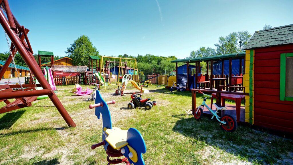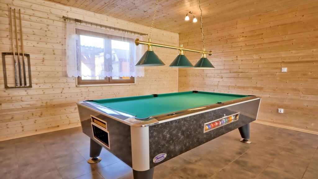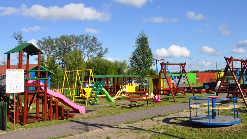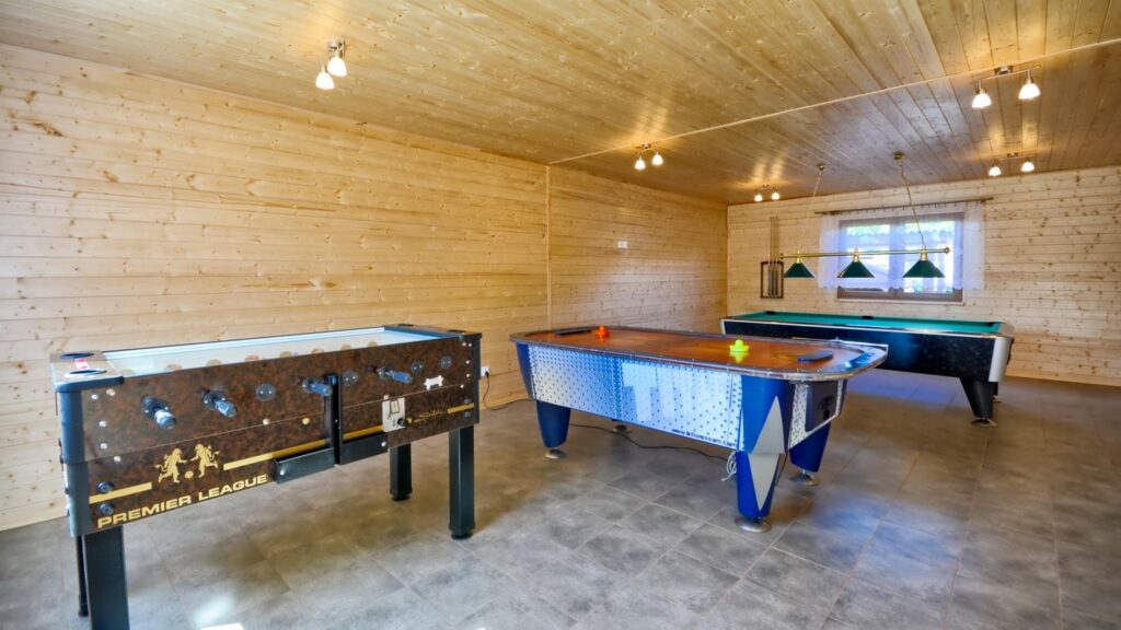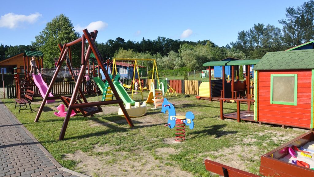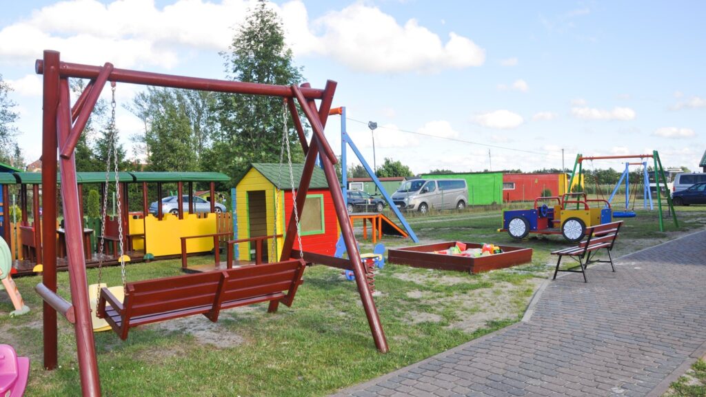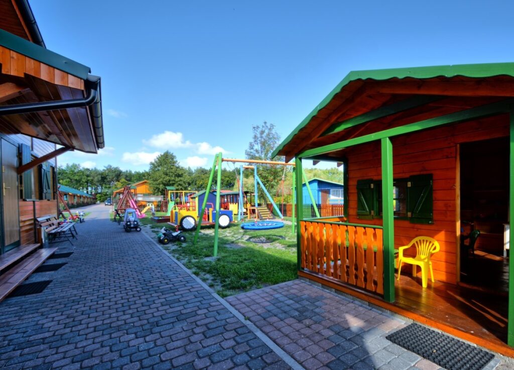 Do dyspozycji ponadto oferujemy: plac zabaw dla dzieci, kryta sala zabaw dla małych dzieci, koszykówka, siłownia na powietrzu, miejsca parkingowe, grill oraz meble ogrodowe przed każdym domkiem. Na terenie Ośrodka znajduje się bilard, piłkarzyki oraz cymbergaj. Dla Gości dostępne również jest żelazko, deska do prasowania, odkurzacz.